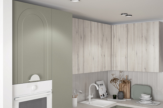Главная изюминка Арко Эко — арочная фрезеровка фасадов. Она навеяна архитектурой Древнего Рима: торжественные базилики, величественные триумфальные арки, монументальные храмы. Здесь история встречается с современностью — рельеф фасадов не просто украшает, а формирует узнаваемый характер кухни вне времени.