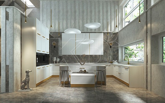 Освежить белую кухню помогут глянцевые фасады. Если выполнить их в светлых тонах, то они будут прекрасно отражать свет и зрительно расширять комнату. Кроме того, лаковые фасады не требуют тщательного ухода, в отличие от матовых. Для удаления загрязнений достаточно протереть поверхность влажной тряпочкой.
