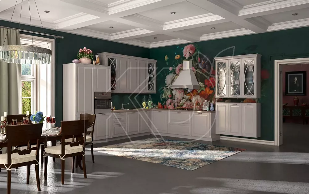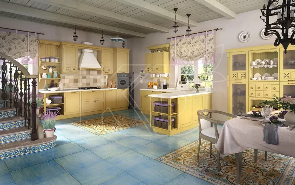 - Размер. Мебель размещается в больших столовых и поэтому имеет большие размеры. Планировка - П-образная или квадратная, обычно с островом. Кухонные гарнитуры более сложные и часто имеют барную стойку или витражные шкафы. Дешевые модели обычно меньше по размеру и имеют линейную планировку.