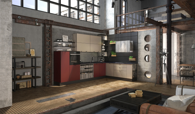 Любителям необычных решений следует обратить внимание на красные кухни. Гранатовые, вишневые, бордовые фасады подойдут для оснащения классических интерьеров. Обыграть подобные версии можно зеркальными и стеклянными вставками, элементами из металла.