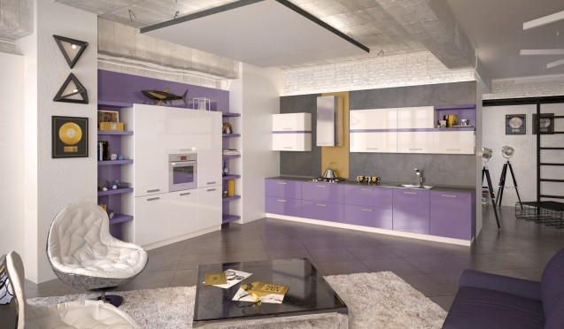 Оригинальные гарнитуры, изготовленные по передовым технологиям и соблюдением всех установленных стандартов, во все времена привлекали к себе внимание владельцев квартир и загородных домов. Считается, что фиолетовая кухня оказывает положительное воздействие на работу центральной нервной системы. Кроме того, наблюдается существенное визуальное увеличение помещения небольшой площади.