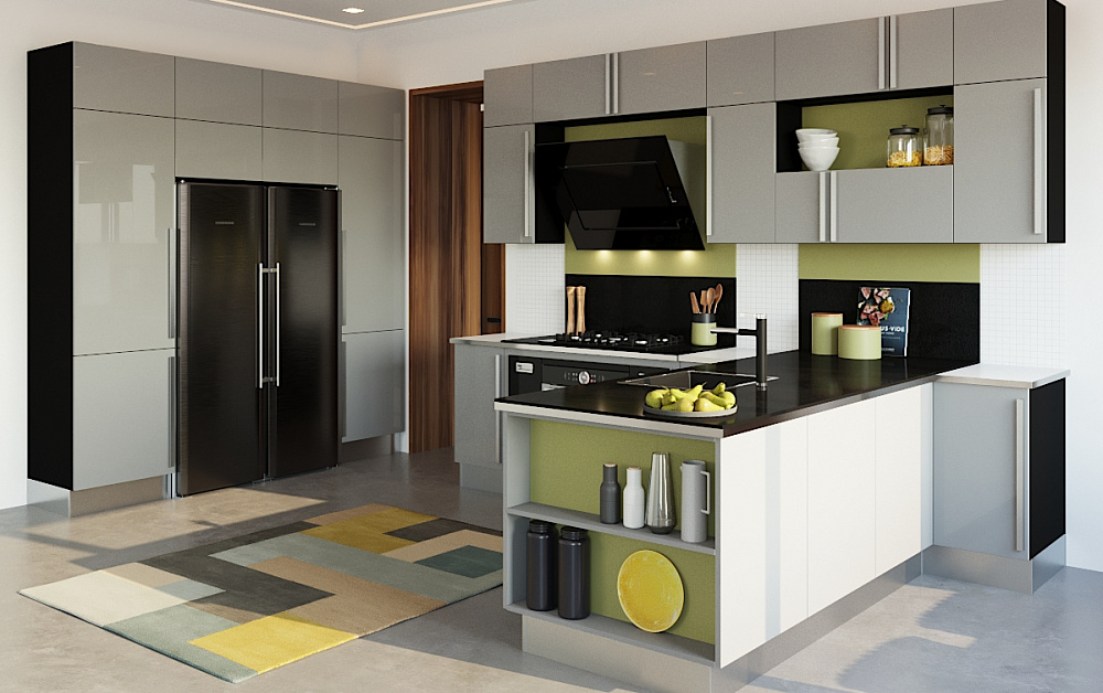 Чтобы П-образная кухня вписалась в интерьер максимально гармонично, расстояние между параллельными сторонами должно составлять, как минимум 120 см. В этом случае не возникнет сложностей при открывании духовки и дверец шкафов.