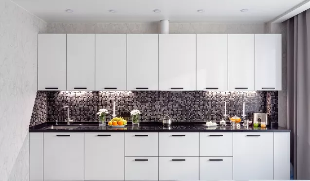 • Практичность. Фасады такого типа легко очищаются с помощью мягкой салфетки или губки.
