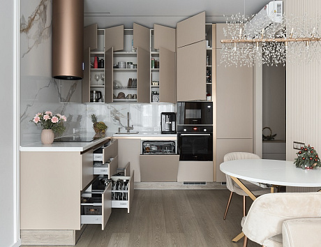 Кухня — то самое место, где собирается вся семья, делятся новостями и рождаются самые тёплые воспоминания. Чтобы это пространство было не только красивым, но и удобным, рекомендуем заранее продумать системы хранения. Грамотная организация поможет избежать беспорядка, упростит процесс готовки и сделает кухню ещё более приятной. В этой статье поделимся полезными идеями, которые помогут решить эту задачу.
