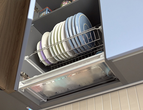• наклонные полки в шкафах идеально подходят для тарелок, делая их доступными и аккуратно размещенными.