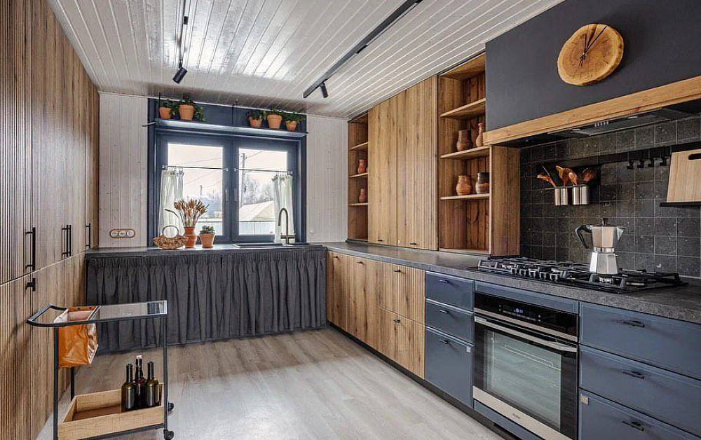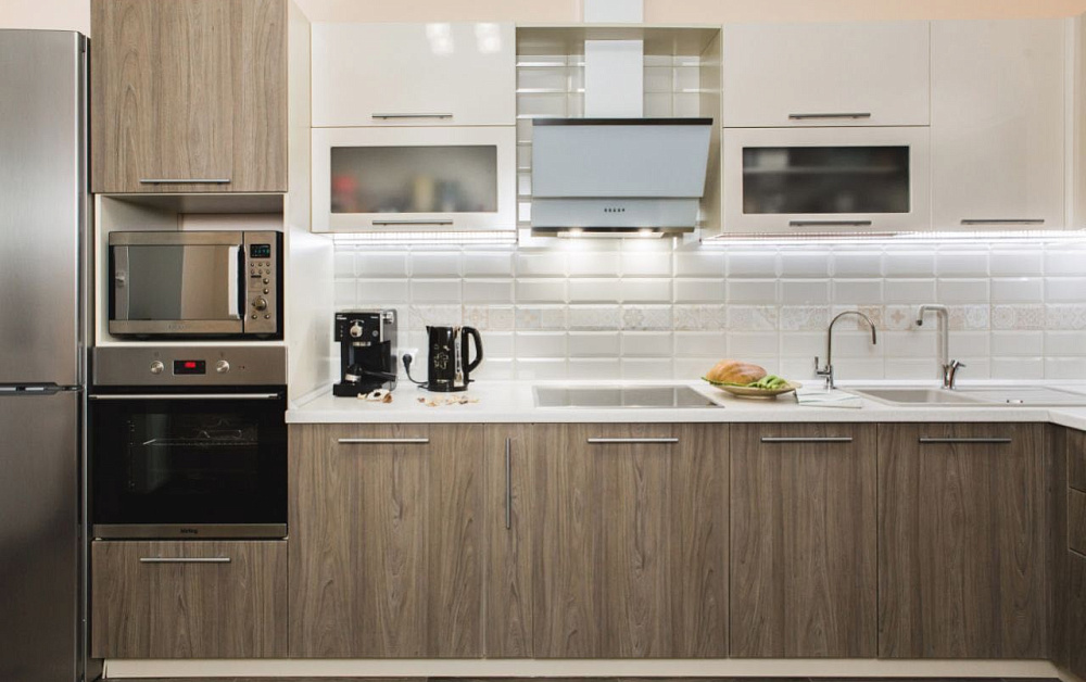 Если стены кухни не позволяют установить стандартный комплект мебели, рекомендуем заказать кухню по индивидуальным размерам. В этом случае дизайн-проект будет реализован с учетом особенностей помещения. Например, ниши будут использованы для установки полок и бытовой техники.