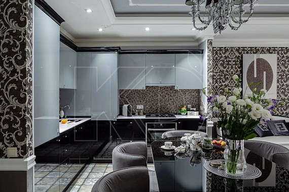 Особый шик – глянцевое декорирование фасадов или других элементов кухни. Это когда свет отражают лишь отдельные элементы. Обычно их изготавливают из самых современных материалов, например, из лакированного МДФ премиум-класса. Исходя из этого можно выделить следующие преимущества решения: