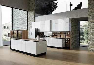 В модерне часто применяются современные материалы – закаленное стекло, хромированный металл и высокопрочный пластик. Гарнитуры в стиле модерн оснащаются разнообразными системами для хранения и организации пространства на кухне.