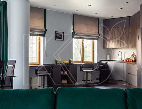 Если при создании интерьера хозяева придерживались нейтральной гаммы, то им стоит подобрать шторы в цвет мебели. Они гармонично дополнят кухню и не перетянут всё внимание на себя.