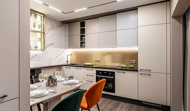 • Если вы нечасто убираетесь на кухне, отдайте предпочтение матовым поверхностям, на которых не остаются отпечатки пальцев и разводы.