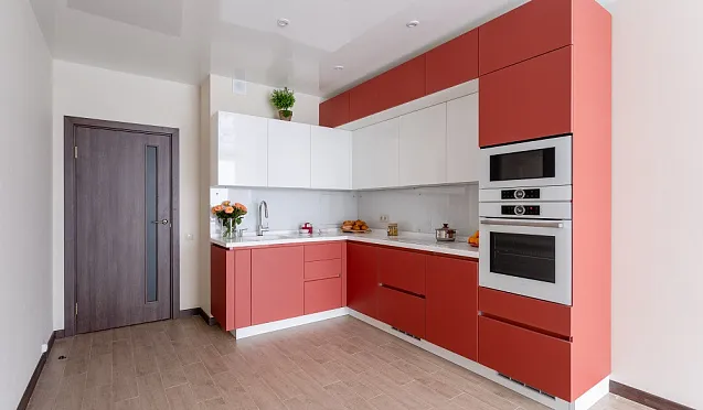 На него наносят глянцевый или матовый лак. Такие долговечные фасады придают кухне аристократизма, но стоимость шпона высокая. Если вы повредите фасад, легкая шлифовка поможет его отреставрировать.