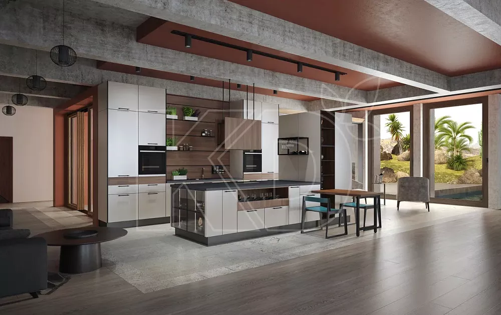 Белый гарнитур может иметь любую планировку, поэтому нужный вариант найдется для любой площади. Для большой комнаты или квартиры-студии подойдет островная модель. С ее помощью можно зонировать пространство. Конструкция в виде острова, совмещает в себе столешницу с варочной панелью и мойкой, иногда и с дополнительными ящиками.