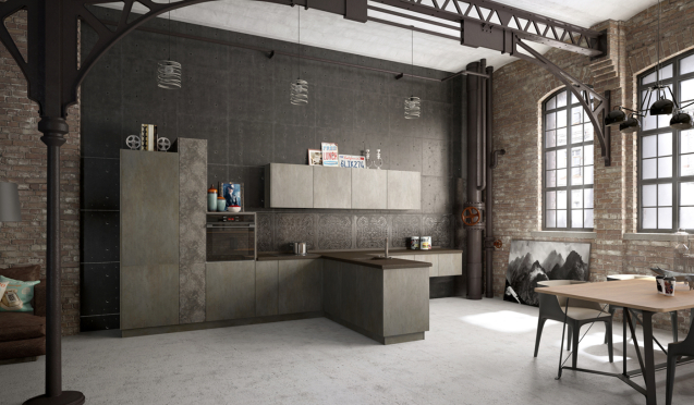 Кухонный гарнитур коричневого цвета идеально вписывается в стиль лофт. Для придания дизайну характерной своеобразности используется красно-коричневый кирпич или бетон. Мебель в стиле лофт специально должна быть грубоватой, но при этом эргономичной и функциональной. Основной задачей в процессе проектирования является сохранение эффекта промышленного помещения.