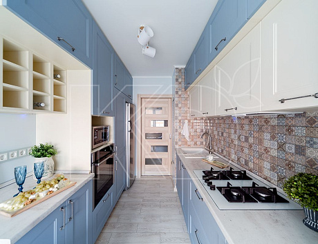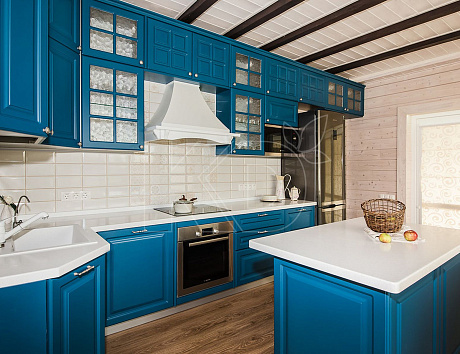 Голубой оттенок универсален и вписывается в кухни практически всех стилей, но некоторые направления буквально созданы для него: