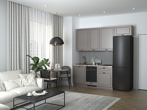Минимализм, в котором есть всё. Прямая кухня Уна — стильное решение без лишнего. Чёткая геометрия, гладкие фасады и сдержанные акценты создают современный образ. Продуманные зоны хранения — максимум комфорта в минимуме пространства. Идеальный вариант для тех, кто выбирает функциональность и чистый дизайн.