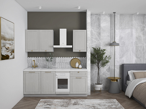 Кухня Лея — компактное готовое решение в классическом стиле, сочетающее элегантный дизайн и абсолютную функциональность. Изящные фасады с рамочной фрезеровкой придают ей нотку утончённости, а до мелочей продуманная конструкция делает её идеальной для небольшого помещения, в котором каждый сантиметр должен быть полезным.
