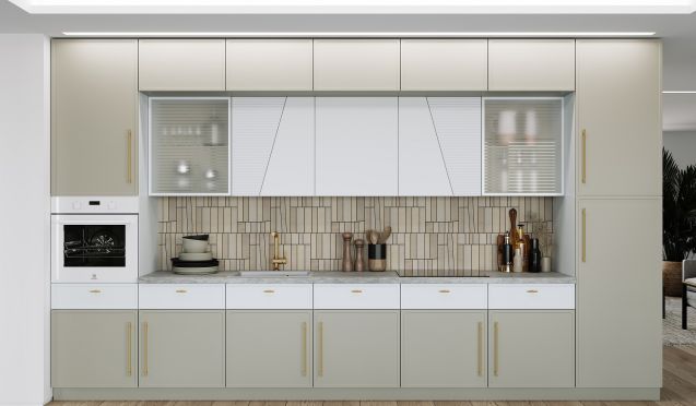 В случае, если речь идет не только о небольшой площади, но и узком помещении, оптимальным решением станет заказать кухню по индивидуальным размерам прямого типа. Это также влечет за собой следующие ключевые преимущества: