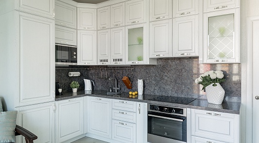 Дубовую мебель можно назвать по-настоящему универсальной: она органично вписывается в самые разные интерьеры. Конечно, в первую очередь этот вариант востребован у ценителей консервативной классики. Классические кухни из массива дуба, окрашенные в благородный коричневый, лаконичный белый или элегантный черный цвет, впечатляют затейливой фрезеровкой, колоннами и стеклянными витражами, благодаря декору в виде патины смотрятся как настоящие произведения антикварного искусства.