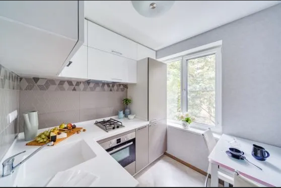 • Эргономичность. Чем компактнее мебель, тем проще соблюсти правило рабочего треугольника, при котором все необходимое будет у хозяйки под руками. В результате в ходе приготовления блюд не потребуется совершать лишних движений между холодильником, плитой и мойкой.