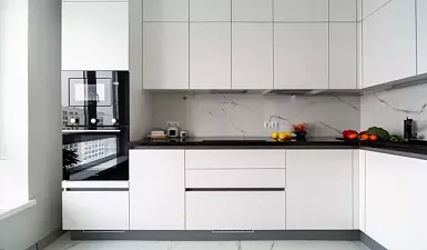 Экоплита Egger в сборке кухонного гарнитура с ламинированием заготовок с обеих сторон – идеальное решение для небольшой кухни, которую хочется расширить.