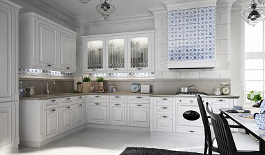 Более авангардные решения, в которых на фасадах мебельного гарнитура применяются вставки из натурального дерева или белые блоки – смотрятся более свежо в любой обстановке вне зависимости от степени освещенности. Они понравятся почитателям стилей прованс, эклектика и модерн.
