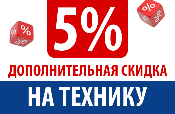 Предоставляется дополнительная скидка в размере 5% на технику (кроме спецпредложений) и на аксессуары (кроме OMOIKIRI, BONE CRUSHER)