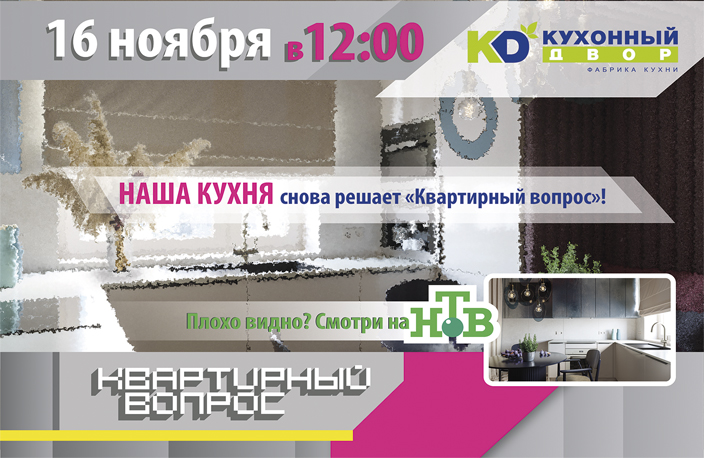 Кухни как люди – каждая со своим характером и склонностями. Многие кухни КД, например, склонны быть «звёздами» телеэкранов! Хотите в этом убедиться? Тогда включайте канал НТВ в эту субботу, 16 ноября, в 12:00! Мы снова покажем проект, достойный того, чтобы им любоваться!