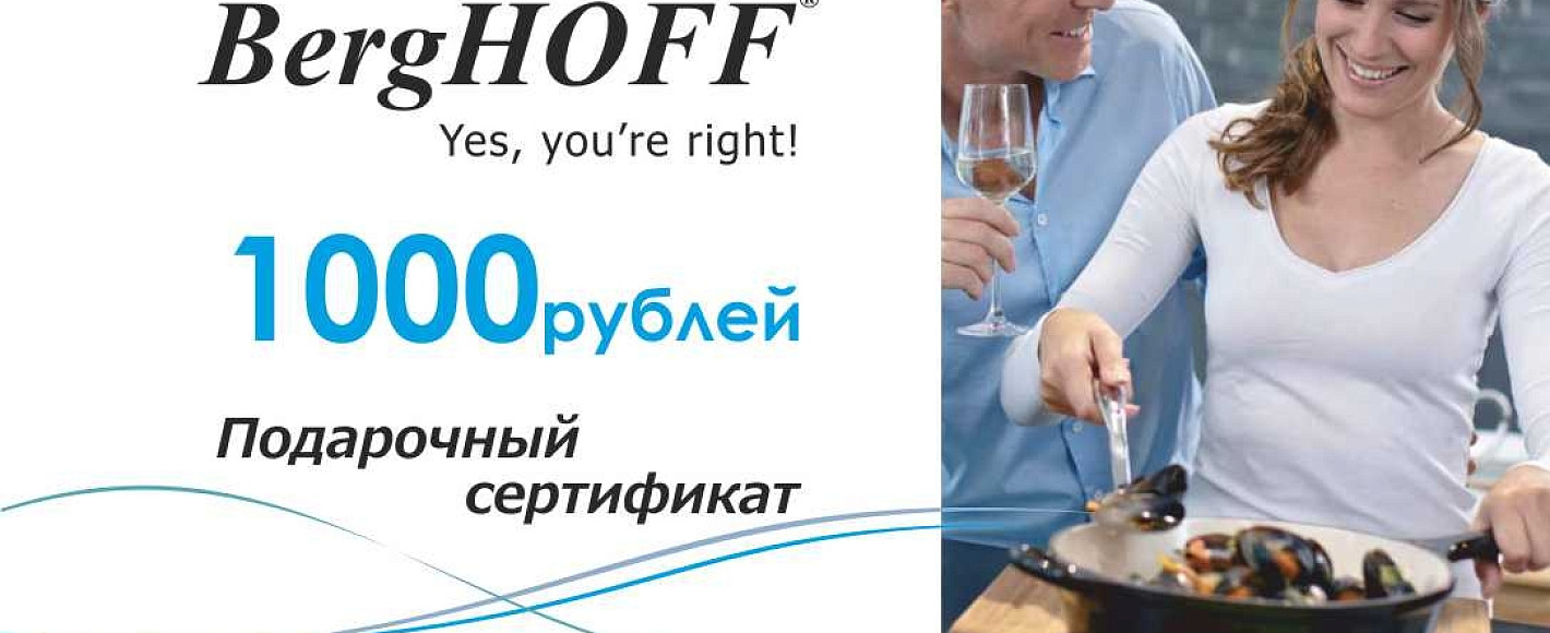 Хорошую кухню хочет каждая. А о посуде с мировым именем «Бергхофф» каждая из нас втайне мечтает… Мечты сбываются! Совместная акция компаний «Кухонный Двор» и «Бергхофф» позволяет каждому покупателю стать обладателем сертификата от  бренда бельгийской посуды «Бергхофф» на сумму от 1000 рублей. Коллекции посуды и аксессуаров «Бергхофф» создаются при участии известных дизайнеров, и ценителей этого бренда с каждым днем становится все больше. Присоединяйтесь!