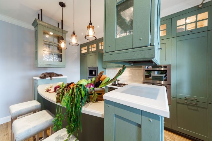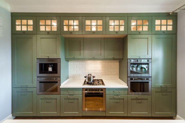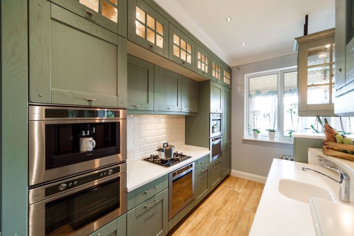 Современная классическая кухня в зеленых тонах ("Дачный ответ" от 15.06.14)